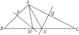 分析:由直线PM为线段AB的垂直平分线,根据线段垂直平分线定理:线段垂直平分线上的点到线段两端点的距离相等可得AM=BM,同理可得AN=NC,然后表示出三角形AMN的三边之和,等量代换可得其周长等于BC的长,由BC的长即可得到三角形AMN的周长.