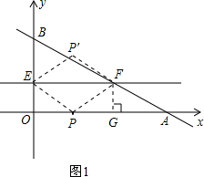 £¨³¤¶Èµ¥Î»/Ã룩µÄËÙ¶ÈÔ˶¯£¬Ö±ÏßEF¡ÎxÖá½»BAÓÚµãF£¬ÉèÔ˶¯Ê±¼äΪtÃ룬µ±µãPÑØÕÛÏßAO-OB-BAÔ˶¯Ò»ÖÜʱ£¬µãPºÍµãEͬʱֹͣÔ˶¯£®Çë½â´ðÏÂÁÐÎÊÌâ