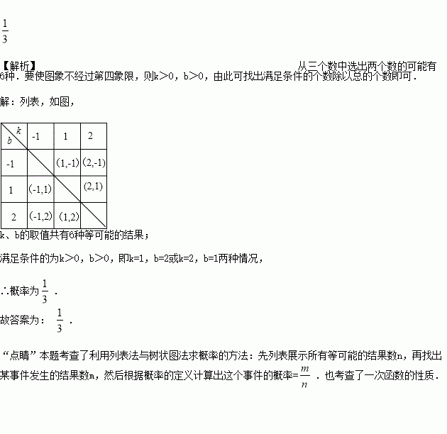 的图象不经过第四象限的概率是____________________.