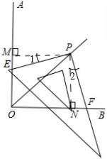 分析 过点P作PM⊥OA于M,PN⊥⊥OB于N,根据角平分线的性质:角平分线上的点到这个角两边的距离相等,PM=PN,可以通过证明PM、PN所两在的两个直角三角形全等,即Rt△PEM≌Rt△PFM 来证明PE=PF