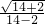 对于任意不相等的两个正数a,b,定义一种运算“?”如下:数学公式.那么14?2=________.