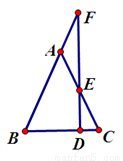如图,△ABC中,点D为BC边上一点,过点D作BC的垂线,交AC于点E,交BA的延长线于点F,并且AE=AF。