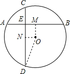 分析:(1)过点O分别作OM⊥AB于点M,ON⊥CD于点N,易知四边形ONEM是矩形,所以ON=EM,再根据垂径定理和已知数据求出EM的长即可得到ON的长,即圆心O到CD的距离;