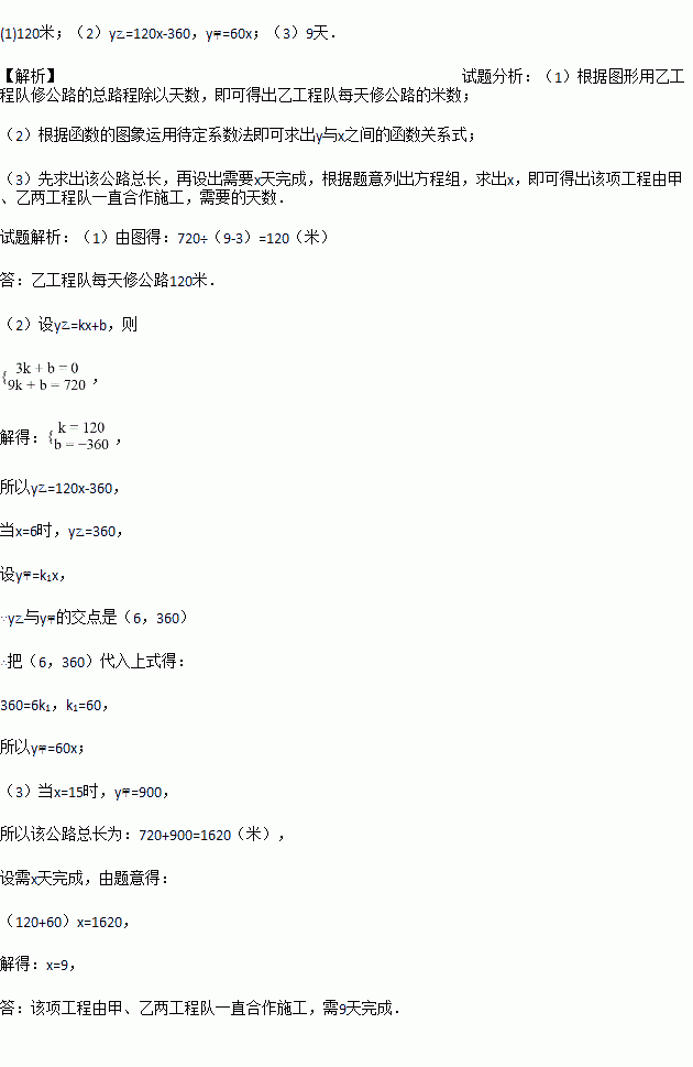 (3)若该项工程由甲、乙两工程队一直合作施工,需几天完成?