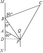 解:作PD⊥BA交BA的延长线于点D,