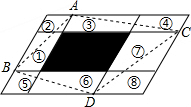 分析 把大平行四边形空白部分看作是由:除阴影部分外,4个小平行四边形组成的,对角线AB、AC、BD、DC把每个小平行四边形平均分成了两个面积相等的三角形,即它们的面积①=②,③=④,⑤=⑥,⑦=⑧;大平行四边形图中空白部分的面积=100-20=80cm2;因此四边形ABDC中空白的部分的面积=①+③+⑥+⑦=80÷2=40cm2,则四边形ABDC的面积=①+③+⑥+⑦+阴影部分的面积=40+20=60cm2.