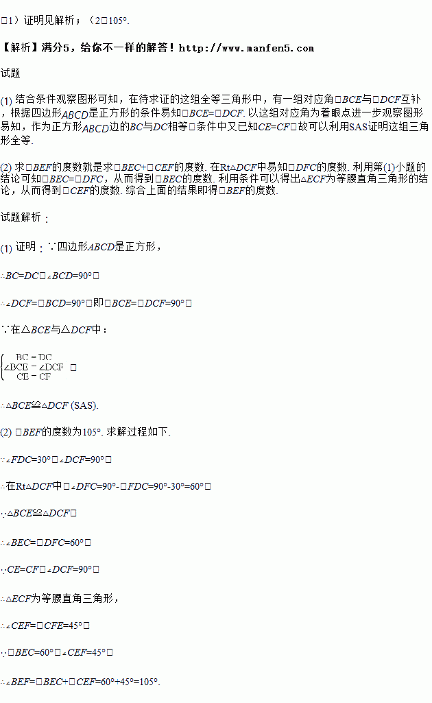 如图,在正方形ABCD中,E为CD边上一点,F为BC延长线上一点,CE=CF.