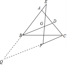 分析 延长AB交CF的延长线于点Q,根据BD为△ABC中线,CF∥BD,可得出BD为△ACQ的中位线,得BD=$\frac{1}{2}$CQ,由平行线的性质得出∠EBD=∠EQC,从而得出∠E=∠Q,根据等角对等边得出CF的长.