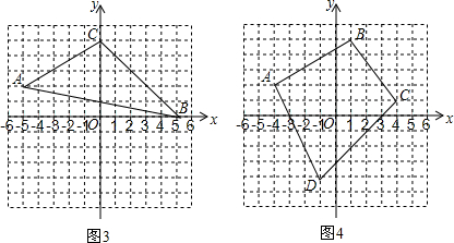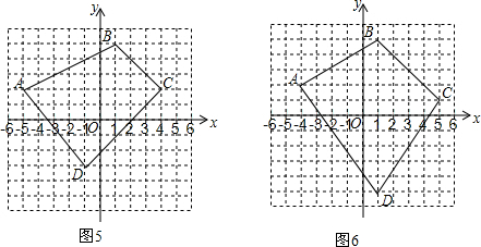 (1)他首先在图4所示的平面直角坐标系中,取了A(-4,2)、B(1,5)、C(4,1)、D(-1,-4)四个点,得到了四边形ABCD.