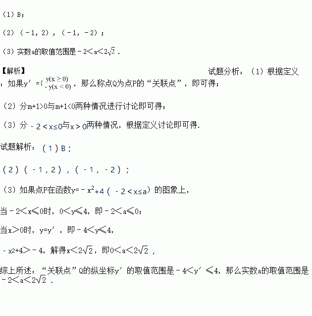 (3)如果点P在函数y=﹣x2+4(﹣2<x≤a)的图象上,其“关联点”Q的纵坐标y′的取值范围是﹣4<y′≤4,那么实数a的取值范围.