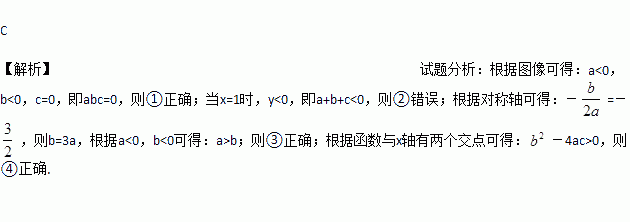 如图,已知二次函数y=ax2+bx+c(a≠0)的图象如图所示,给出以下四个结论:①abc=0,②a+b+c>0,③a>b,④4ac﹣b2<0;其中正确的结论有( )
