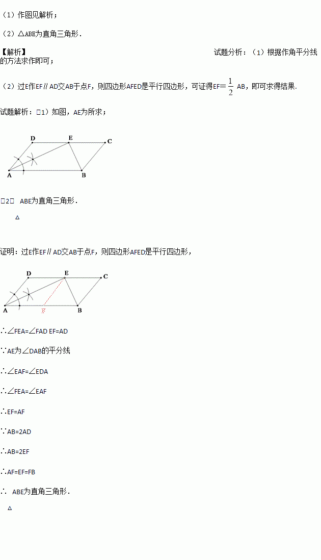 (1)作AE平分∠BAD交DC于E(尺规作图,保留作图痕迹);
