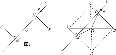 (2)作AC∥l,延长BN交AC于C,连接OC;作BD∥l,延长AM交BD于D,连接OD.证出△MAO≌△NCO即可解答.
