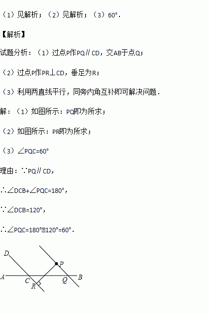 (3)若∠DCB=120°,猜想∠PQC是多少度?并说明理由.