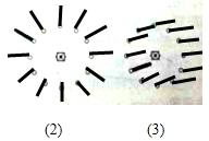 如图,中间是一盏路灯,周围有一围栏杆,图(2)(3)表示的是这些栏杆的影子,但没有画完,请你把图(2)(3)补充完整.