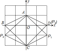 解答 解:(1)如图所示:A(0,1)、B(-2,0)、C(0,-2);故答案为:(0,1),(-2,0),(0,-2);(2)如图所示:△ADC即为所求;(3)如图所示:P1(-2,-1)、P2(2,-1)、P3(2,0)都符合题意.故答案为:(-2,-1)、(2,-1)、(2,0).