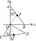 解:根据题意画出△AOB绕着O点顺时针旋转120°得到的△COD,连接OP,OQ,过Q作QM⊥y轴,