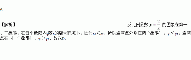 图像上有两个点为(x1,y1)、(x2,y2),且x1<x2则下列关系成立的是( )