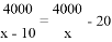 为了尽量减少施工对交通所造成的影响,实际施工时每天比原计划多铺设10米,结果提前20天完成任务. 设原计划每天铺设管道x米,则可得方程( )