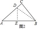 ②如图2,当DE在AB的垂直平分线上,A点落在B上,
