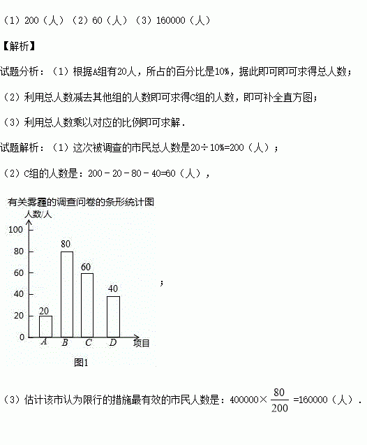 (3)已知该区人口为400000人,请根据调查结果估计该市认为限行的措施最有效的市民人数.