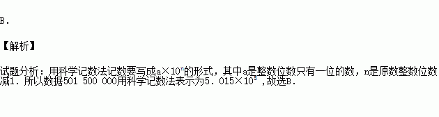 A.50.15×107 B. 5.015×108 C. 5.015×109 D. 5015×105