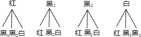 列举所有可能结果,画出树状图如下:由右图可知,共12种可能等可能结果,其中摸出两个球都是黑球的有2种,