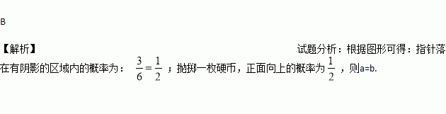 如图是一个可以自由转动的正六边形转盘,其中三个正三角形涂有阴影.转动指针,指针落在有阴影的区域内的概率为