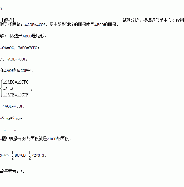 如图,矩形ABCD的对角线AC和BD相交于点O,过点O的直线分别交AD和BC于点E、F,AB=2,BC=3,则图中阴影部分的面积为______.