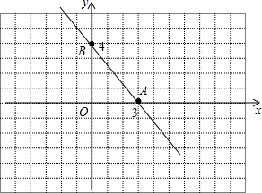解答 解:(1)当y=0时,-$\frac{4}{3}$x+4=0,解得x=3,则A(3,0),