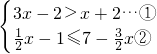 分析:对不等式3x-2>x+2,通过移项、系数化为1求出不等式的解,对不等式两边乘以2,然后再通过移项、合并同类型,系数化为1,求出不等式解,再根据不等式组解集的口诀:大小大小中间找,来求出不等式组的解.