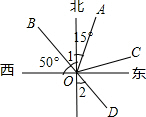 如图,OA的方向是北偏东15°,OB的方向是北偏西40度.