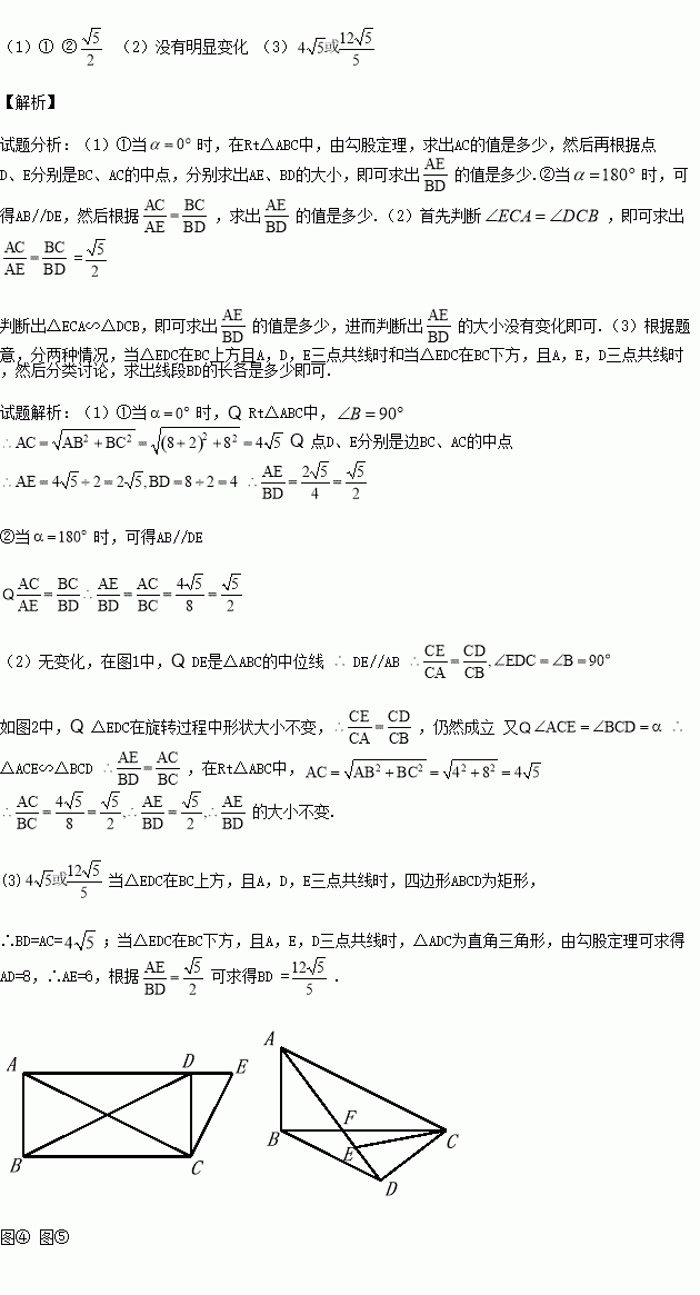 当△EDC旋转至A、D、E三点共线时,直接写出线段BD的长.