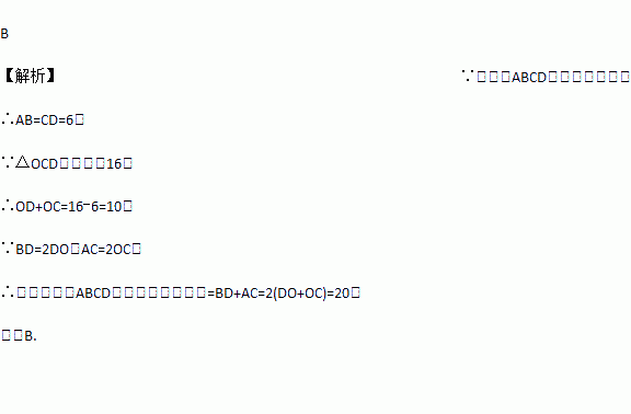 如图,平行四边形ABCD的对角线交于点O,且AB=6,△OCD的周长为16,则AC与BD的和是( )