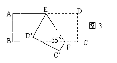 如图3,把长方形纸片沿EF折叠,D、C分别落在D’、C’的位置,若∠EFB=65,则∠AED’等于( )