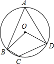 如图,A,B,C,D是⊙O上的四点,且∠BCD=100°,求∠BOD(弧BCD所对的圆心角)和∠BAD的大小.