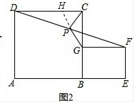(2)延长GP交CD于H,可证△DPH≌△GPF,即可求得PH=PG,根据直角三角形底边斜边中线等于斜边一半性质即可解题.