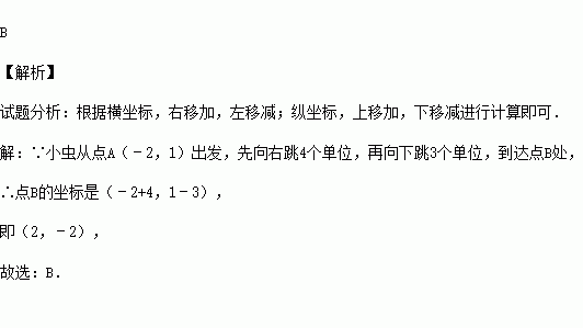(2015秋•镇江期末)一只小虫从点A(﹣2,1)出发,先向右跳4个单位,再向下跳3个单位,到达点B处,则点B的坐标是( )