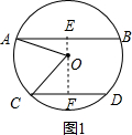 分析 (1)根据题意画出图形,如图1,利用勾股定理和垂径定理可得OE,由AB与CD间的距离为12cm,可得OF,由勾股定理得CF,得出CD;
