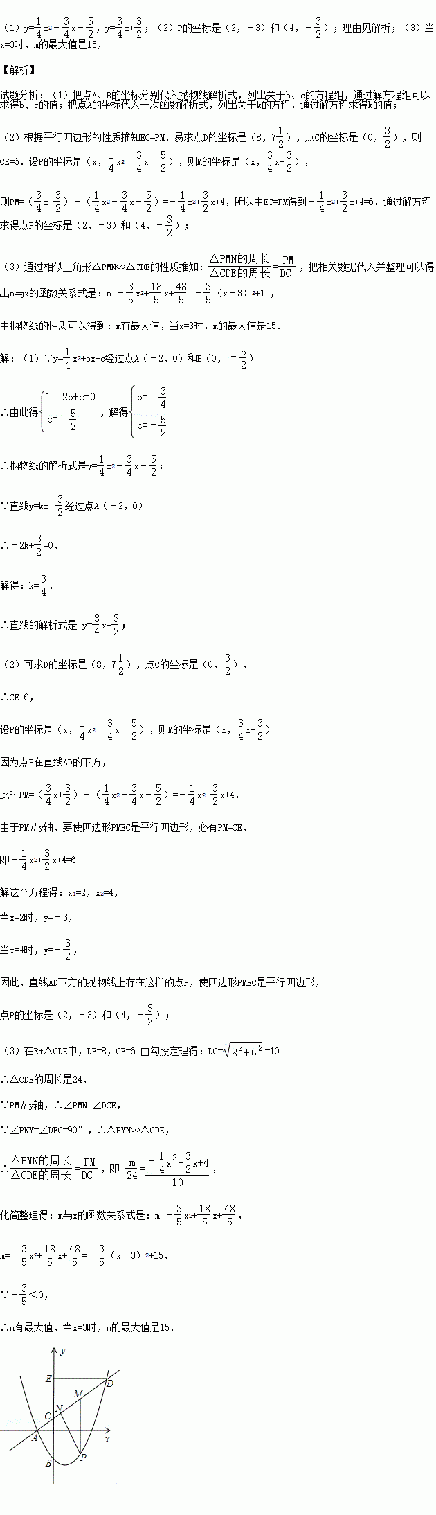 (3)在(2)的条件下,作PN⊥AD于点N,设△PMN的周长为m,点P的横坐标为x,求m与x的函数关系式,并求出m的最大值.