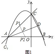 ∴点P运动的路径是△ABC的中位线P1P2,如图1,![]()