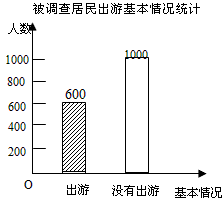 某县为了了解“十、一”国庆期间该县常住居民的出游情况,有关部门随机调查了1600名常住居民,并根据调查结果绘制了如下统计图: