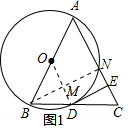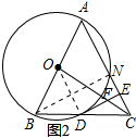 (3)根据OD∥AC,得出$\frac{CE}{OD}$=$\frac{CF}{OF}$=$\frac{7}{8}$,即$\frac{CE}{R}$=$\frac{7}{8}$,根据(2)的结论得出R=$\frac{D{C}^{2}}{2NE}$=$\frac{D{C}^{2}}{2CE}$,代入即可求得$\frac{C{E}^{2}}{D{C}^{2}}$=$\frac{7}{16}$,得出$\frac{CE}{DC}$=$\frac{\sqrt{7}}{4}$,根据cos∠ACB=$\frac{CE}{DC}$,从而得出cos∠ABC=$\frac{\sqrt{7}}{4}$.