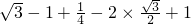 点评:传统的小杂烩计算题,特殊角的三角函数值是常考的.涉及知识:负指数为正指数的倒数;任何非0数的0次幂等于1;绝对值的化简.