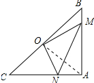 (2)由等腰直角三角形的性质得OA=OB,OA平分∠BAC,∠B=45°,并且AO⊥BC,则∠NAO=∠B=45°,根据全等三角形的判定得到△NAO≌△MBO,则 ON=OM,∠AON=∠BOM,又∠BOM+∠AOM=90°,得到∠AON+∠AOM=90°,即可得出△OMN是等腰直角三角形;