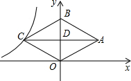 分析 设菱形的两条对角线相交于点D,如图,根据菱形的性质得OB⊥AC,BD=OD=2,CD=AD=3,再由菱形ABCD的对角线OB在y轴上得到AC∥x轴,则可确定C(-3,2),然后根据反比例函数图象上点的坐标特征求k的值.