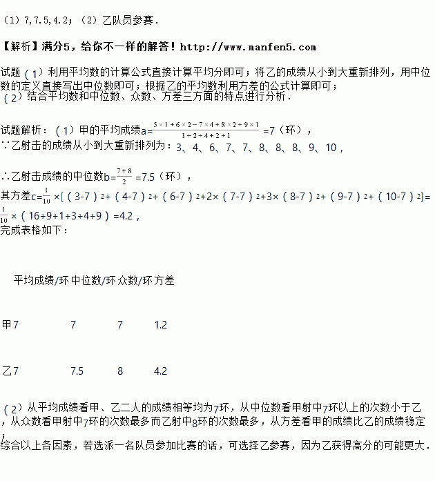 (2)分别运用表中的四个统计量,简要分析这两名队员的射击成绩,若选派其中一名参赛,你认为应选哪名队员?