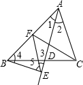 解答 解:(1)如图,∵AD平分∠BAC,![]()
