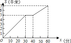 | A. | 整个过程的平均速度是$\frac{7}{60}$千米/时 | B. | 该同学途中停了10分钟 | ||