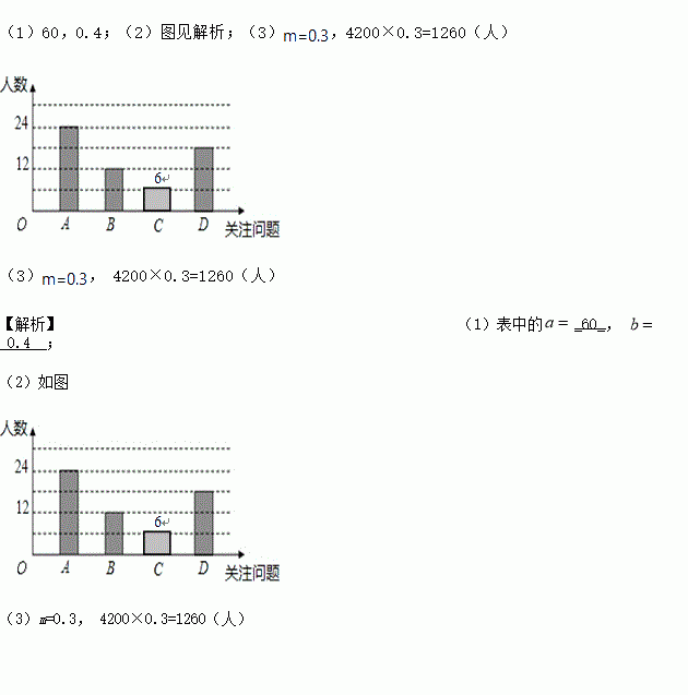 (3)如果小明所在的学校有4200名学生,那么根据小明提供的信息估计该校关注“全球变暖”的学生大约有多少人?